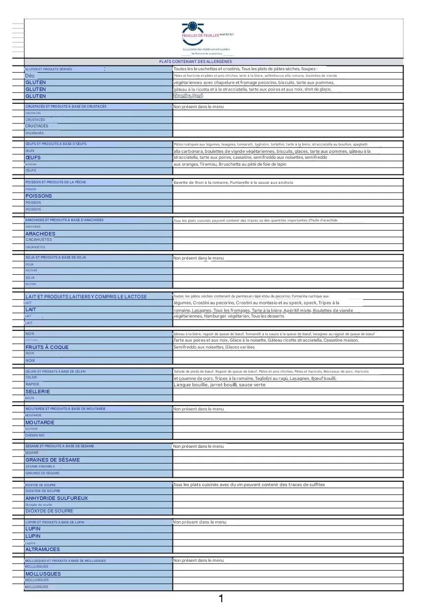 Afin d'assurer la sécurité et le bien-être de nos clients, nous fournissons une LISTE DÉTAILLÉE DES ALLERGÈNES présents dans nos plats. Nous vous invitons à consulter la liste suivante afin d'identifier tout allergène et d'informer notre personnel de toute exigence alimentaire particulière..