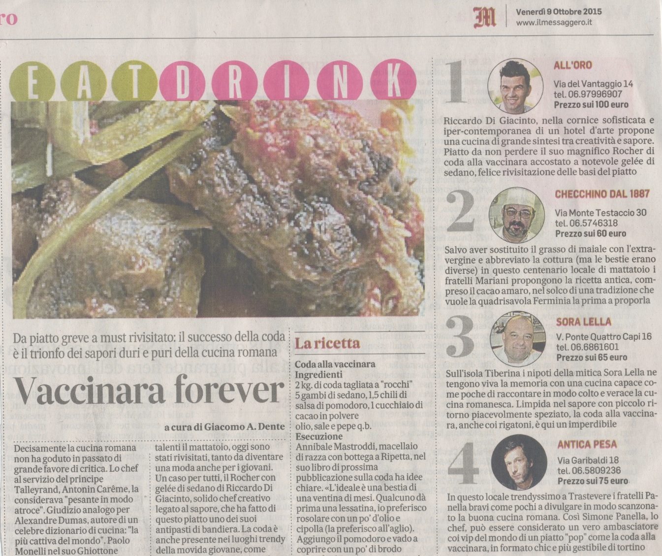- il Messaggero : "des ris de veau à la Pajata, protagonistes de la robuste cuisine romaine disparue"